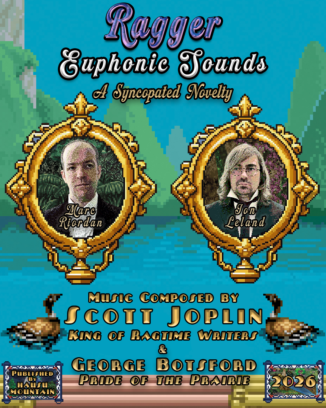 Marc Riordan and Jon Leland make music together under the name Ragger. Each are multi-instrumentalists and avid collaborators in their wide artistic practices: Riordan performed and collaborated with the likes of The Cairo Gang, The Red Krayola, Xiu Xiu, Owls, and Joshua Abrams before moving from his longtime home of Chicago to LA, while Leland performed with Janka Nabay and the Bubu Gang, Glasser, Amen Dunes, Steve Gunn, and Skeletons before moving from New York to LA and then to the Bay Area to begin a career in video game development. The two began collaborating in 2017 after being invited by Cameron Stallones to form the current trio lineup of his long-running luminary experimental project Sun Araw, with Riordan handling bass and lead synth parts and Leland on electronic drum kit. They formed Ragger shortly after meeting, performing as a duo for a bi-weekly residency in the front café of the noted experimental venue Zebulon in LA, with a very specific scope of material in mind: the ragtime compositions of Scott Joplin and his contemporaries, presented in synthetic tones for synthesizers and electronic V drums. Hausu Mountain is proud to introduce Ragger to the world with their first album of recordings in this style, Euphonic Sounds.